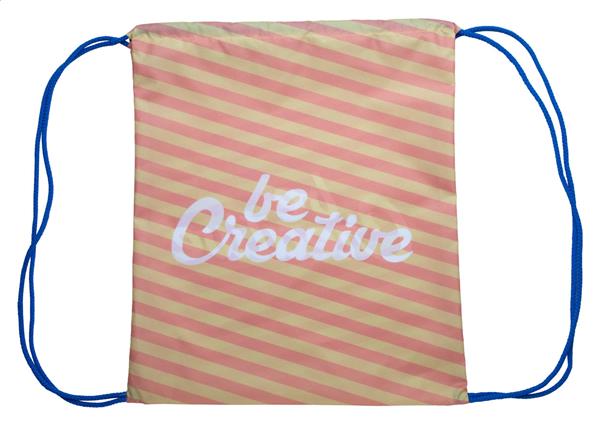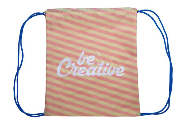Description: Własnego projektu worek ze sznurkami. 190T, poliester. Z grafiką sublimacyjną po całości. Min. ilość: 25szt. Primary Color: niebieski Secondary Color: biały Material 1: 190T poliester Rozmiar: 370×425 mm Pojemność torby: 8.3 l