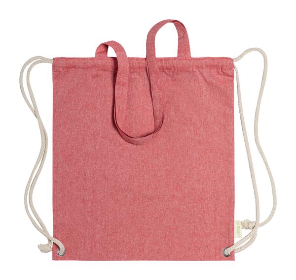 Worek ze sznurkami z recyklingu. Z grubymi plecionymi sznurkami i długimi uchwytami. Może służyć również jako torba na zakupy. 100% bawełna z recyklingu, 140 g/m2.