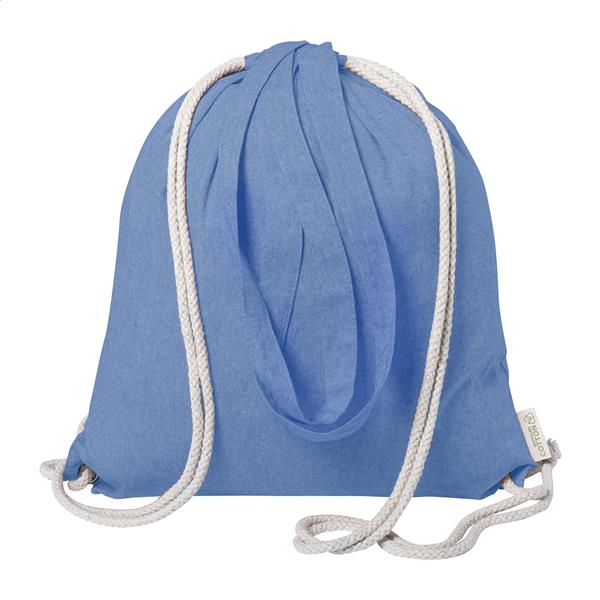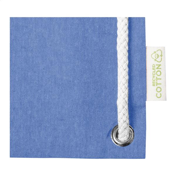 Worek ze sznurkami z recyklingu. Z grubymi plecionymi sznurkami i długimi uchwytami. Może służyć również jako torba na zakupy. 100% bawełna z recyklingu, 140 g/m2.