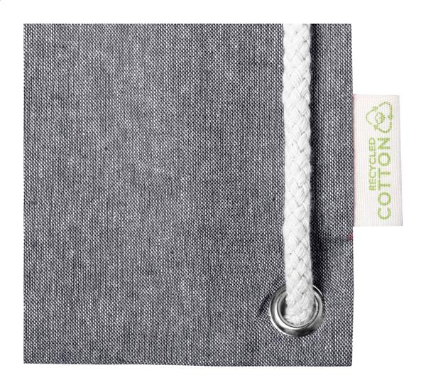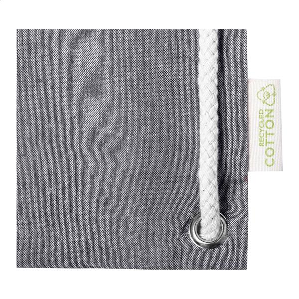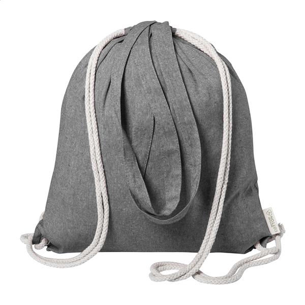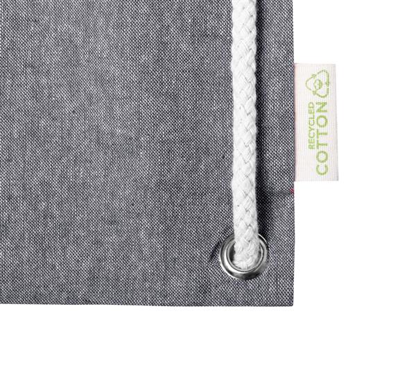 Worek ze sznurkami z recyklingu. Z grubymi plecionymi sznurkami i długimi uchwytami. Może służyć również jako torba na zakupy. 100% bawełna z recyklingu, 140 g/m2.