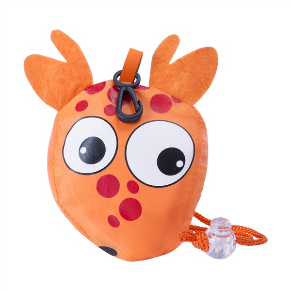 Składany worek ze sznurkami dla dzieci z woreczkiem w kształcie zwierzaka i karabińczykiem, 190T poliester.