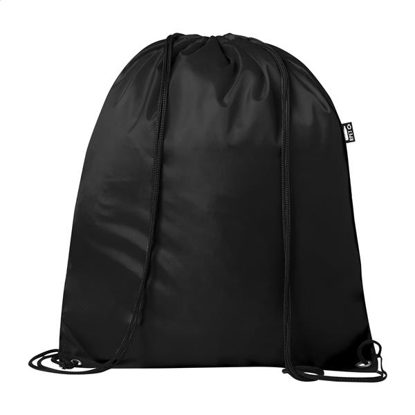 Worek ze sznurkami z poliestru RPET ze wzmocnionymi narożnikami. Z metką RPET.