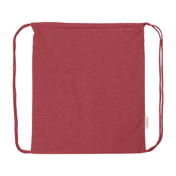 Worek ze sznurkami wykonany w 70% z bawełny z recyklingu i w 30% z poliestru RPET, o gramaturze 140 g/m2. Z charakterystyczną metką z bawełny z recyklingu.