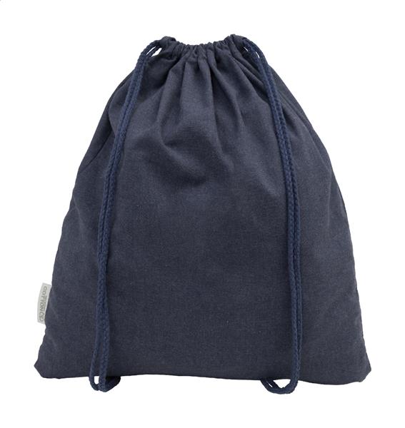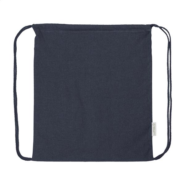 Worek ze sznurkami wykonany w 70% z bawełny z recyklingu i w 30% z poliestru RPET, o gramaturze 140 g/m2. Z charakterystyczną metką z bawełny z recyklingu.