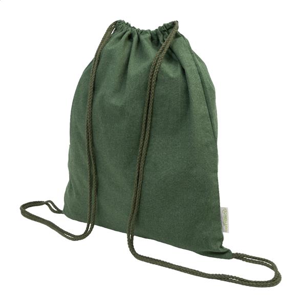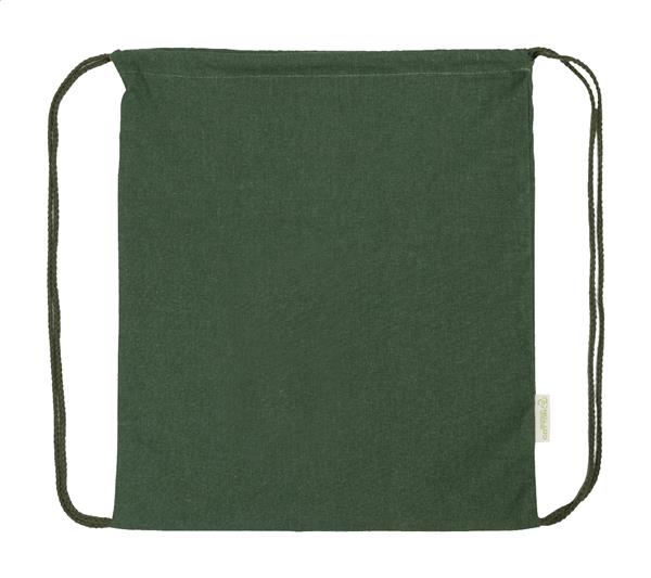 Worek ze sznurkami wykonany w 70% z bawełny z recyklingu i w 30% z poliestru RPET, o gramaturze 140 g/m2. Z charakterystyczną metką z bawełny z recyklingu.