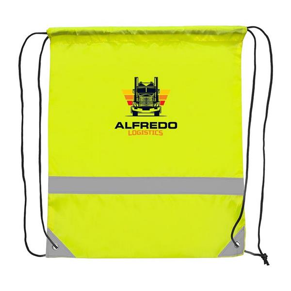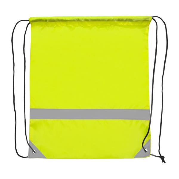 Worek ze sznurkiem umożliwiającym noszenie na plecach, wzmocnione narożniki zmniejszają ryzyko rozdarcia materiału, pomieści drobne zakupy lub strój sportowy na siłownię, na froncie połyskliwy pasek, produkt wykonany z poliestru 190T. Wyłącznie do użytku promocyjnego.