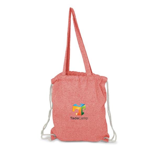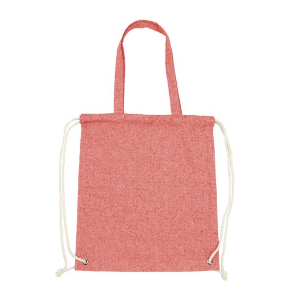 Worek ze sznurkiem i torba na zakupy 2 w 1, sznurki umożliwiają noszenie na plecach a długie uchwyty pozwalają nosić worek na ramieniu, pomieści drobne zakupy lub strój sportowy na siłownię, produkt wykonany z bawełny z recyklingu o gramaturze 140 g/m2