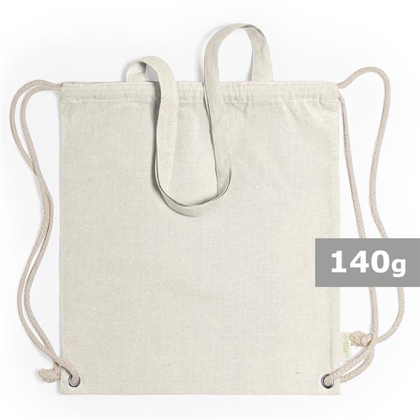 Worek ze sznurkiem i torba na zakupy z długimi uchwytami 2 w 1, wykonany z bawełny z recyklingu