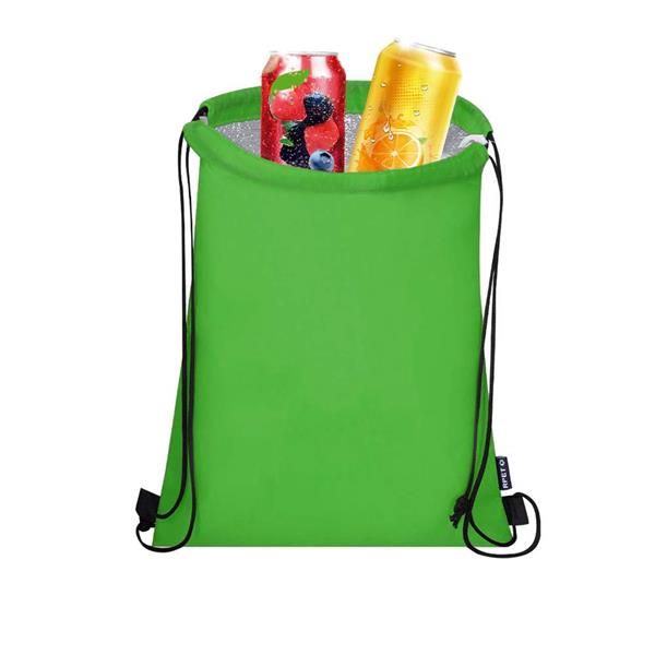 Worek ze sznurkiem umożliwiającym noszenie na plecach, pomieści drobne zakupy lub strój sportowy na siłownię, produkt wykonany z poliestru 210D RPET i aluminium