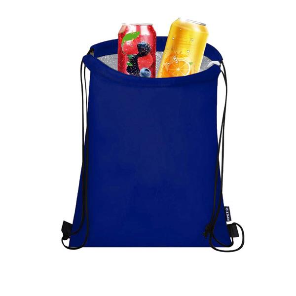 Worek ze sznurkiem umożliwiającym noszenie na plecach, pomieści drobne zakupy lub strój sportowy na siłownię, produkt wykonany z poliestru 210D RPET i aluminium