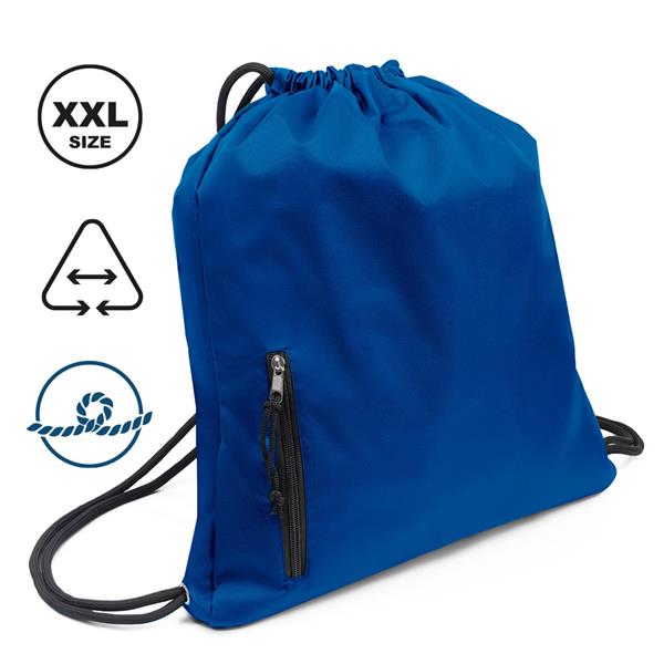 Obszerny worek z grubym sznurkiem umożliwiającym noszenie na plecach, wzmocniony wodoszczelny materiał lepiej chroni przed czynnikami atmosferycznymi, pomieści zakupy lub strój sportowy na siłownię, nowoczesny design, posiada funkcjonalną przednią kieszeń na drobiazgi zamykaną na zamek błyskawiczny, produkt wykonany z poliestru 230 g/m2