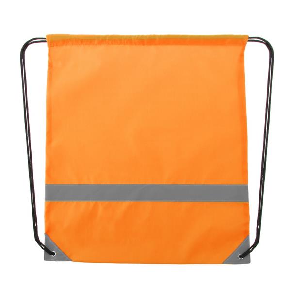 Worek ze sznurkiem umożliwiającym noszenie na plecach, wzmocnione narożniki zmniejszają ryzyko rozdarcia materiału, pomieści drobne zakupy lub strój sportowy na siłownię, na froncie połyskliwy pasek, produkt wykonany z poliestru 190T. Wyłącznie do użytku promocyjnego.