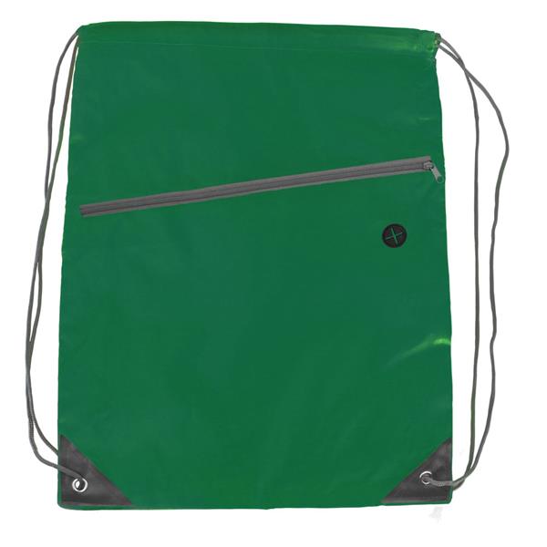 Worek ze sznurkiem umożliwiającym noszenie na plecach, wzmocnione narożniki zmniejszają ryzyko rozdarcia materiału, pomieści drobne zakupy lub strój sportowy na siłownię, posiada przednią kieszeń zamykaną na zamek błyskawiczny oraz otwór na kabel od słuchawek lub power banku (nie są dołączone), produkt wykonany z poliestru 210D