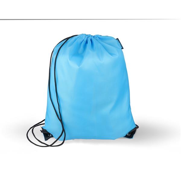Worek ze sznurkiem, czarny nylonowy sznurek po obu stronach, zamknięcie na ściągacz, pojemność: 5L, maksymalne obciążenie: 7 kg, ikona RPET na metce, produkt wykonany z poliestru RPET 210D z dwoma czarnymi narożnikami z PU z przodu i wewnętrznymi szwami