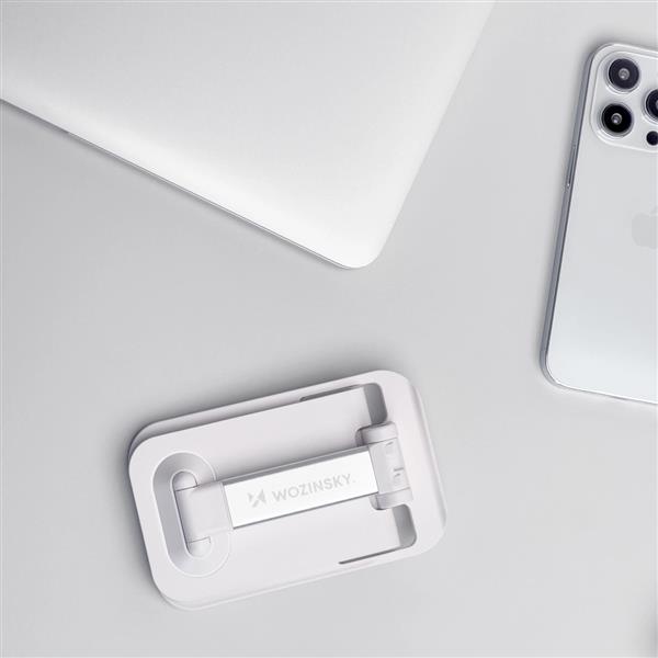 Lubisz porządek na biurku w pracy lub w domu? Stojak na telefon lub tablet Wozinsky WFDPS-W1 pomoże Ci zorganizować przestrzeń roboczą. Rozkłada się jednym ruchem, a po złożeniu zajmuje naprawdę niewiele miejsca – możesz schować go do szuflady lub organizera na dokumenty. Dzięki kompaktowym rozmiarom i klasycznym kolorom (białym lub czarnym) będzie pasował do wielu wnętrz, również tych nowoczesnych. Prezentuje się bardzo elegancko.