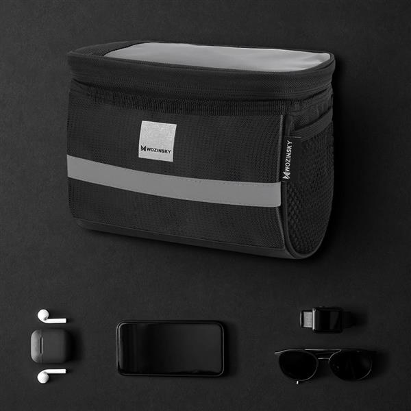 Torba rowerowa na kierownicę z okienkiem na telefon Wozinsky o pojemności 2 l – czarna (WBB12BK)