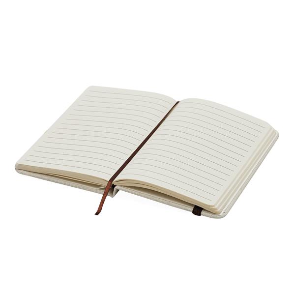 Notes WRITER w formacie A6, z zaokrąglonymi rogami, elastyczną gumką do zamykania i zintegrowaną zakładką, powierzchnia przypominająca płótno, 80 stron, w linie, gramatura ok. 70 g/m2. Materiał: Papier Kolor: beżowy, brązowy Tagi: notebooki,akcesoria biurowe