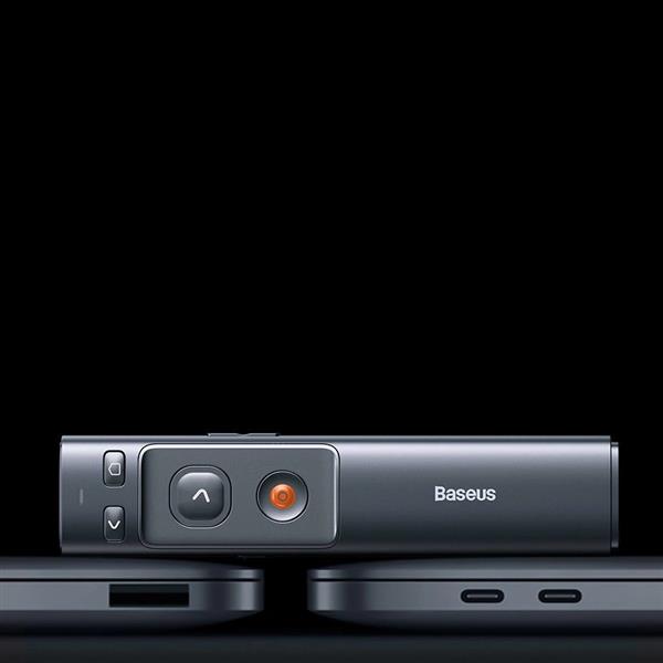Intuicyjnie rozmieszczone przyciski na wskaźniku laserowym Baseus Orange Dot pozwalają na łatwe korzystanie z kluczowych funkcji podczas prezentacji. Sterowanie pełnym ekranem, czarnym ekranem i zmiana slajdów odbywają się bez problemu, dając prowadzącemu pewność i kontrolę nad przebiegiem wystąpienia. Ergonomiczny układ przycisków pozwala na naturalne korzystanie z urządzenia, czyniąc prezentację bardziej efektywną.