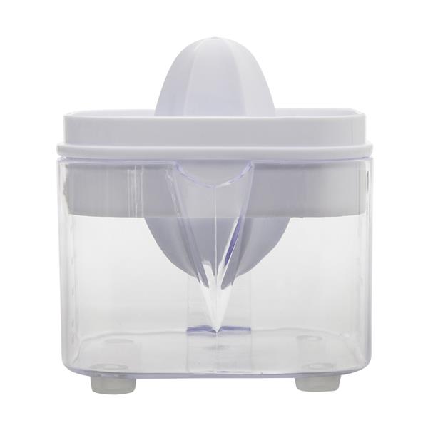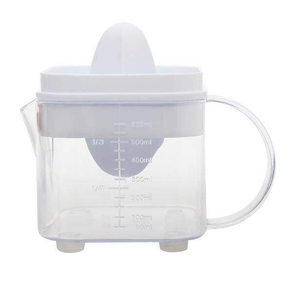 Pojemnik z wyciskarką do pomarańczy oraz wyciskarką do cytryn o całkowitej pojemności 600 ml.