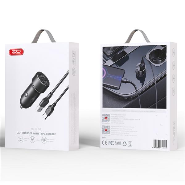 XO CC53 to ładowarka samochodowa z dwoma gniazdami USB o mocy 12W. Dzięki niewielkim wymiarom, urządzenie zajmuje mało miejsca. W zestawie znajduje się kabel USB – USB-C.