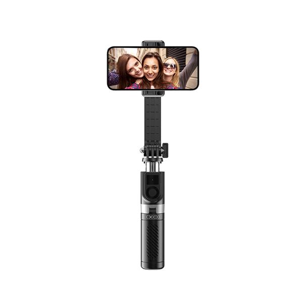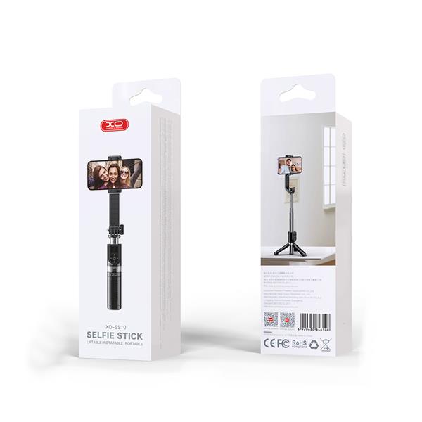 Solidny i estetycznie wykonany selfiestick XO SS10 z komfortowym uchwytem na telefon i wbudowanym tripodem. Uruchamianie migawki w telefonie odbywa się za pomocą przycisku na pilocie poprzez połączenie bluetooth. Urządzenie zostało zaprojektowane w taki sposób, aby po złozeniu zajmowało bardzo mało miejsca.