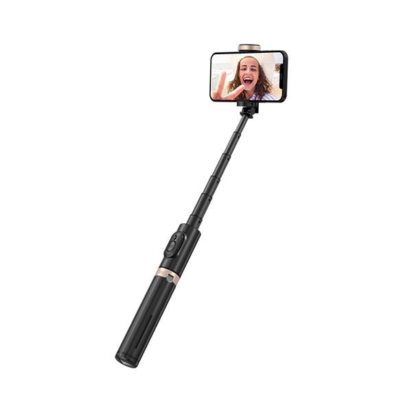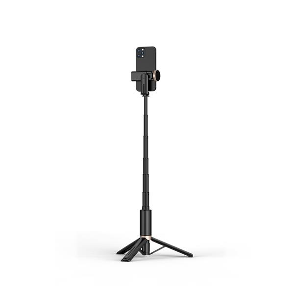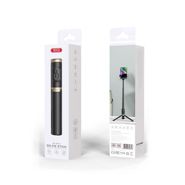 Solidny i estetycznie wykonany selfiestick XO SS14 z komfortowym uchwytem na telefon i wbudowanym tripodem. Uruchamianie migawki w telefonie odbywa się za pomocą przycisku na pilocie poprzez połączenie bluetooth. Urządzenie zostało zaprojektowane w taki sposób, aby po złozeniu zajmowało bardzo mało miejsca.