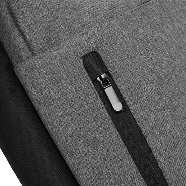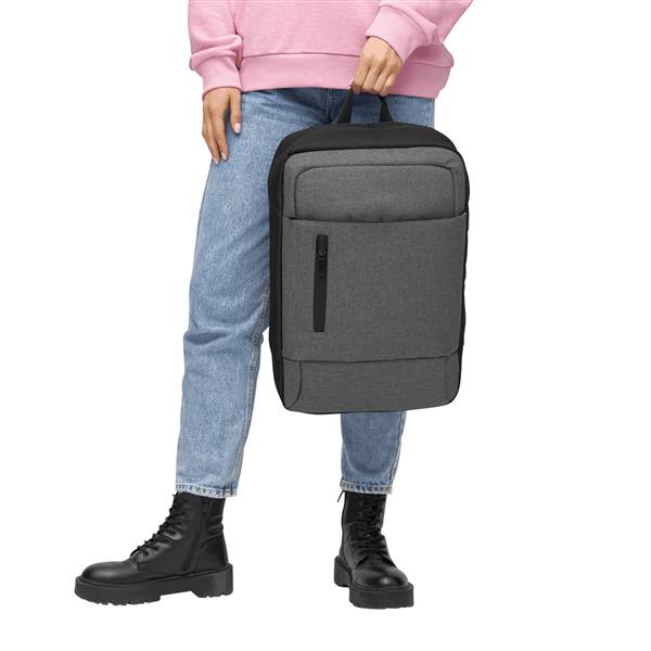 Plecak YALE GO z 1 przestronną komorą główną z zamkiem błyskawicznym i wyściełaną kieszenią na laptopa. Posiada organizer i przednią kieszeń z zamkiem błyskawicznym, uchwyt do przenoszenia, wyściełane i ergonomiczne szelki, wyściełaną część tylną z ukrytą kieszonką. Materiał: 300/600D Poliester Kolor: czarny, szary Tagi: torby