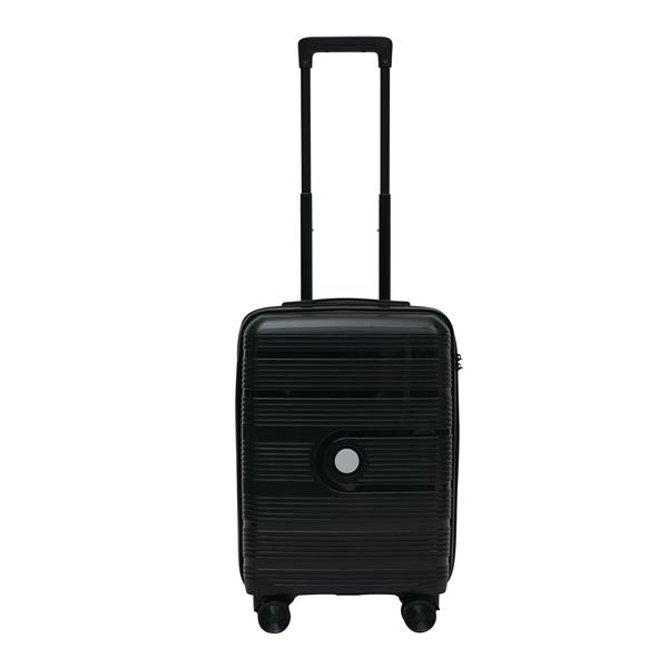 Walizka kabinowa na kółkach YORK wykonana z wyjątkowo wytrzymałego materiału z możliwością pakowania po obu stronach. Posiada zapinaną na zamek kieszeń z siatki i elastyczny pasek do pakowania. Ma także 2 uchwyty – wysuwany teleskopowy oraz do przenoszenia, 4 płynnie obracające się podwójne kółka 360°, wymienną metalową tabliczkę na logo z przodu oraz zamek szyfrowy. Rozmiar odpowiedni dla tanich linii lotniczych.
