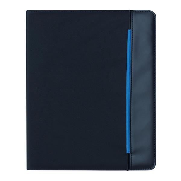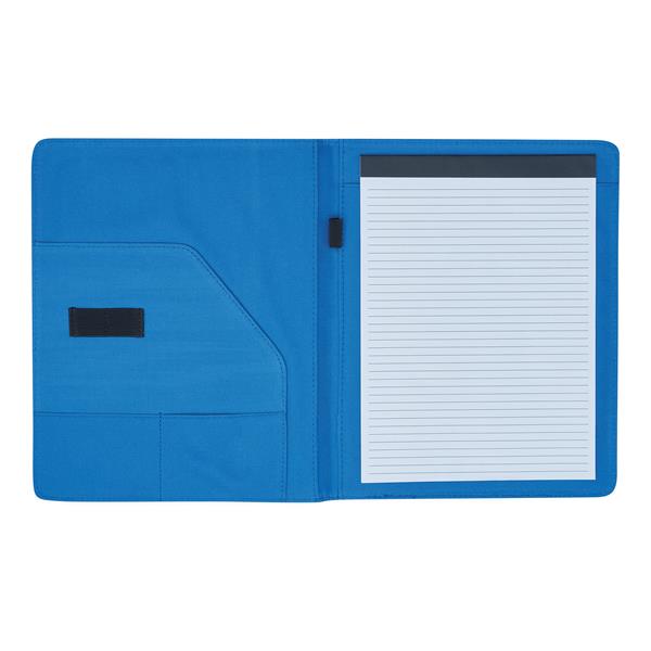 Portfolio YOUNG STAR w formacie A4, z notesem, wsuwanymi kieszonkami, pętelkami na długopis i inne akcesoria, zamykane gumką, na zewnątrz czarne, w środku kolorowe. Materiał: Poliester Kolor: czarny, niebieski Tagi: Teczki,teczki,teczki,akcesoria biurowe,torby