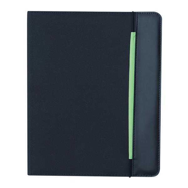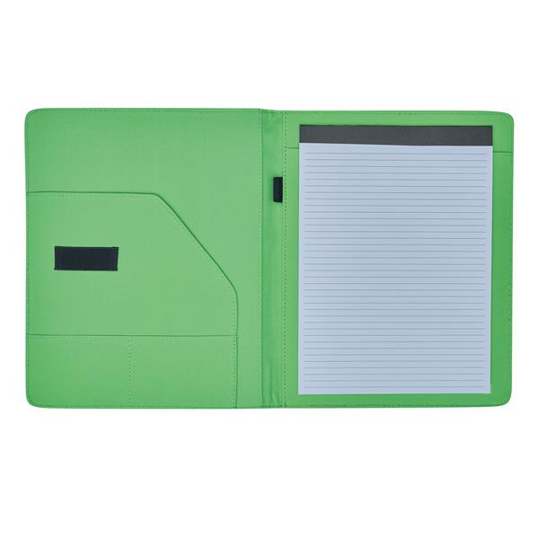 Portfolio YOUNG STAR w formacie A4, z notesem, wsuwanymi kieszonkami, pętelkami na długopis i inne akcesoria, zamykane gumką, na zewnątrz czarne, w środku kolorowe. Materiał: Poliester Kolor: czarny, zielony Tagi: Teczki,teczki,teczki,akcesoria biurowe,torby
