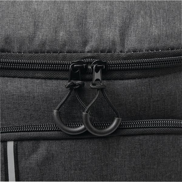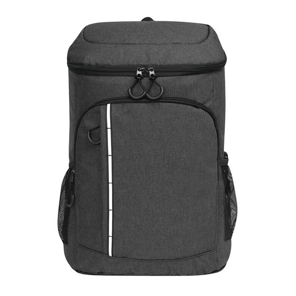 Plecak termoizolacyjny YUKON. Posiada 1 dużą, zamykaną na zamek, izolowaną komorę główną z podszewką z PEVA, 1 przednią kieszeń zamykaną na zamek z przegrodą z siatki, 1 pionową przednią kieszeń zamykaną na zamek z odblaskowym paskiem, 2 boczne kieszenie z siatki oraz 1 odłączany otwieracz do butelek ze stali nierdzewnej. Ma wodoodporne dno, regulowane i wyściełane paski na ramię oraz uchwyt do przenoszenia.