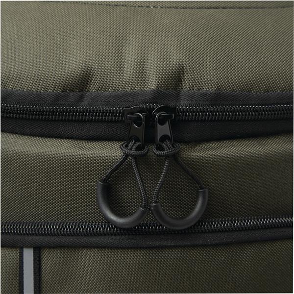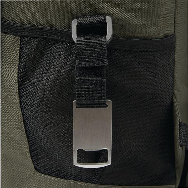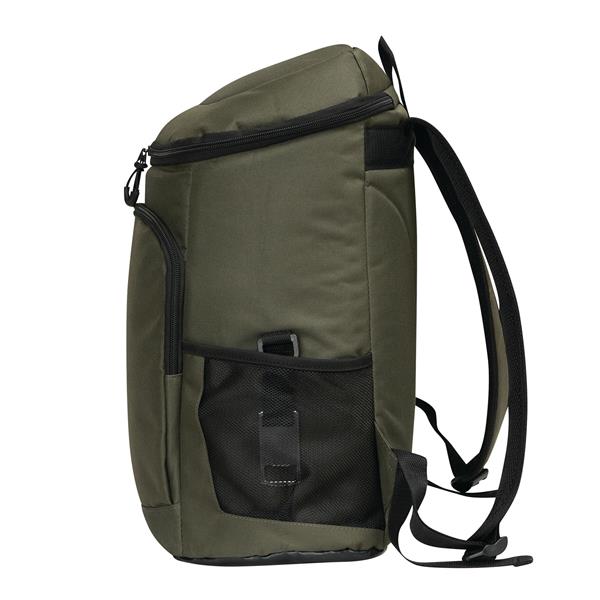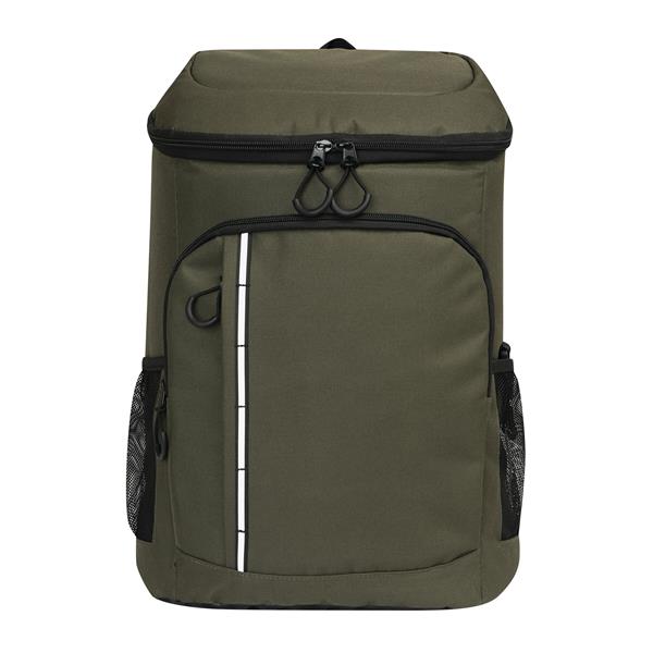 Plecak termoizolacyjny YUKON. Posiada 1 dużą, zamykaną na zamek, izolowaną komorę główną z podszewką z PEVA, 1 przednią kieszeń zamykaną na zamek z przegrodą z siatki, 1 pionową przednią kieszeń zamykaną na zamek z odblaskowym paskiem, 2 boczne kieszenie z siatki oraz 1 odłączany otwieracz do butelek ze stali nierdzewnej. Ma wodoodporne dno, regulowane i wyściełane paski na ramię oraz uchwyt do przenoszenia.
