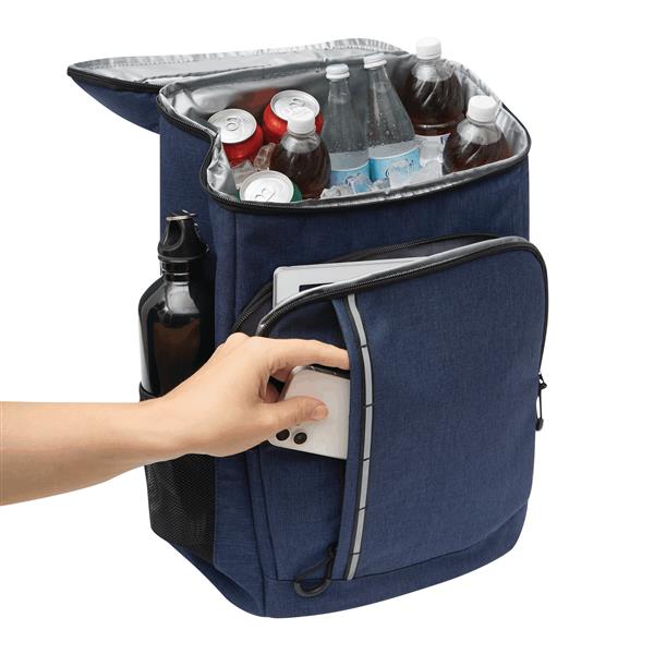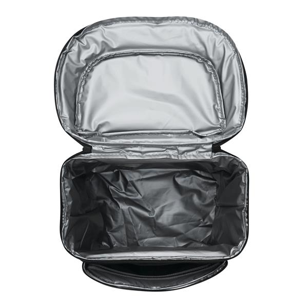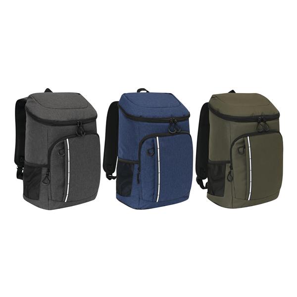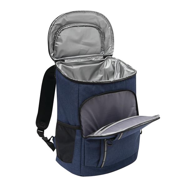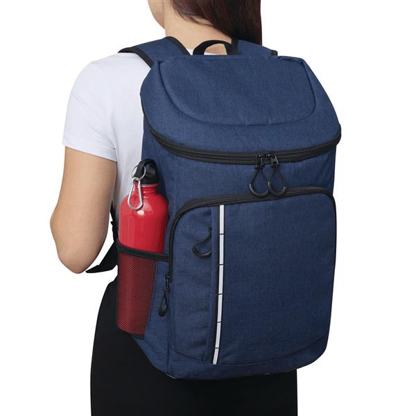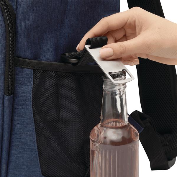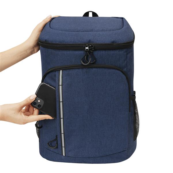 Plecak termoizolacyjny YUKON. Posiada 1 dużą, zamykaną na zamek, izolowaną komorę główną z podszewką z PEVA, 1 przednią kieszeń zamykaną na zamek z przegrodą z siatki, 1 pionową przednią kieszeń zamykaną na zamek z odblaskowym paskiem, 2 boczne kieszenie z siatki oraz 1 odłączany otwieracz do butelek ze stali nierdzewnej. Ma wodoodporne dno, regulowane i wyściełane paski na ramię oraz uchwyt do przenoszenia.