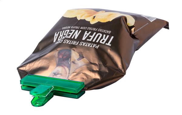 Przezroczysty klips do torebek z tworzywa sztucznego.