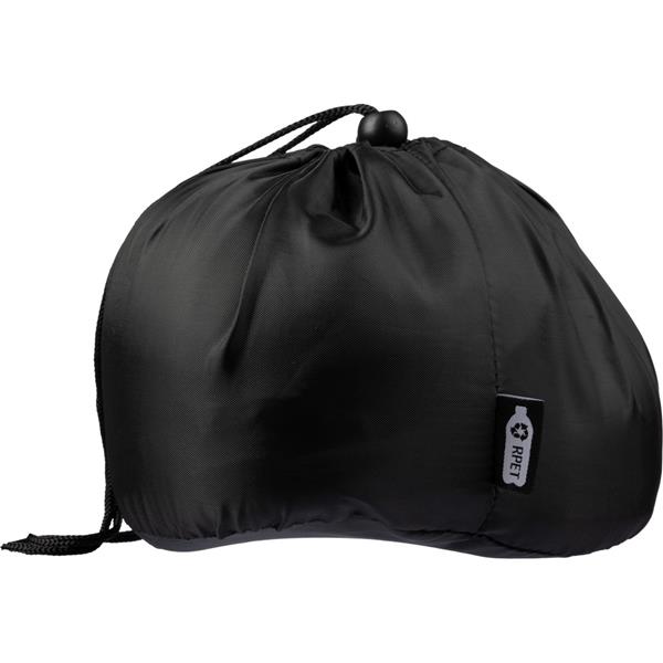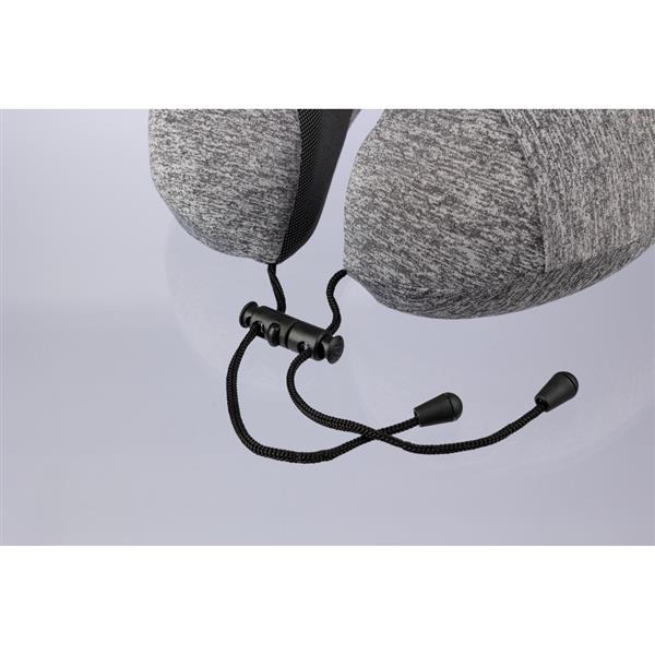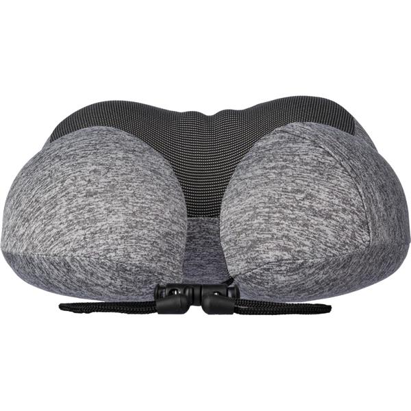 Zagłówek podróżny, poduszka, regulowany sznurek ułatwia dopasowanie zagłówka do pozycji, sprawdzi się podczas podróży autokarem, pociągiem, samochodem lub samolotem, zapakowany w woreczek wykonany z RPET, produkt wykonany między innymi z poliestru