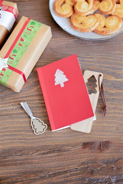 Zakładka do książki ze sklejki bambusowej z wycinanym motywem świątecznym i sznurkiem ze skóry PU.
