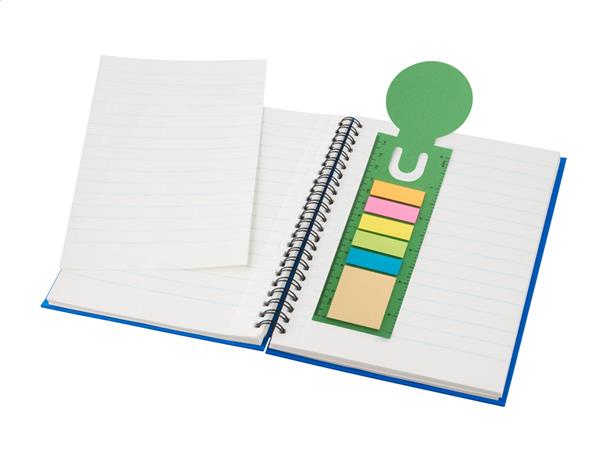 Zakładka/linijka z ekologicznego plastiku ze słomy pszenicznej z 25 samoprzylepnymi karteczkami i 125 zakładkami (w 5 różnych kolorach).