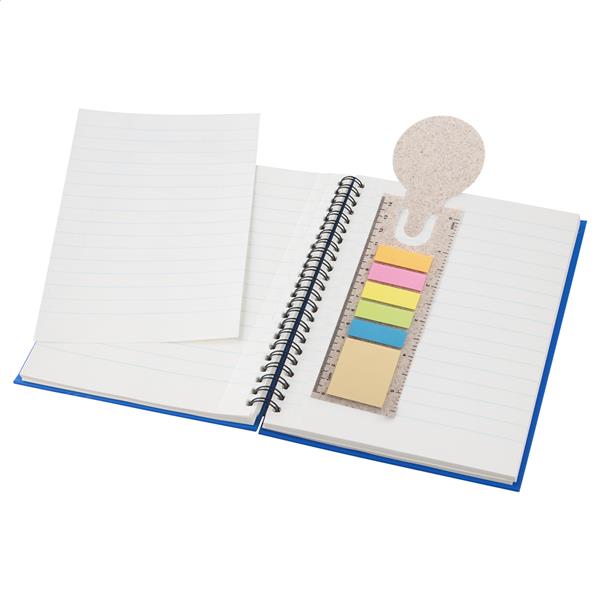 Zakładka/linijka z ekologicznego plastiku ze słomy pszenicznej z 25 samoprzylepnymi karteczkami i 125 zakładkami (w 5 różnych kolorach).