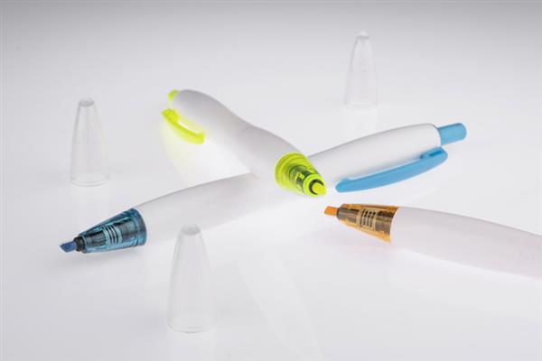 SNAP to nowy typ zakreślacza w formie długopisu automatycznego. Włączenie i wyłączenie zakreślacza następuje po naciśnięciu przycisku na górze. Zakreślacz zabezpieczony jest dodatkowo przed wysychaniem poprzez zatyczkę. Korpus wykonany z tworzywa w białym kolorze z klipem i końcówkami w kolorze dopasowanym do koloru zakreślacza.