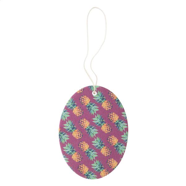 Personalizowany zapach do samochodu o indywidualnym kształcie i zapachu (egzotyczny, zielone jabłko, cytryna, nowy samochód, ocean, wanilia, luksus, mentol). Znakowanie do 4 kolorów CMYK po obu stronach. Min. ilość. 250 sztuk.