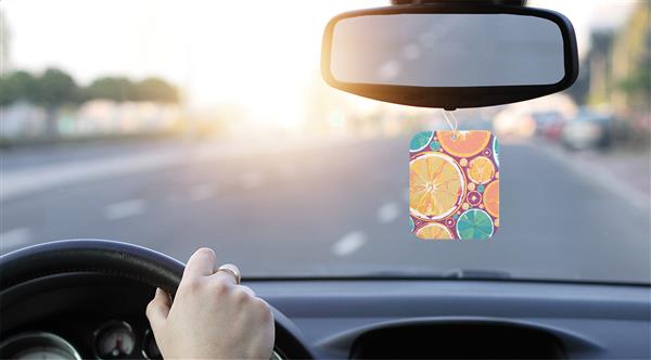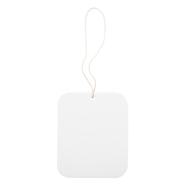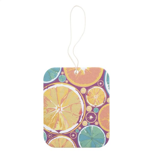 Personalizowany zapach do samochodu o indywidualnym kształcie i zapachu (egzotyczny, zielone jabłko, cytryna, nowy samochód, ocean, wanilia, luksus, mentol). Znakowanie do 4 kolorów CMYK po obu stronach. Min. ilość. 250 sztuk.