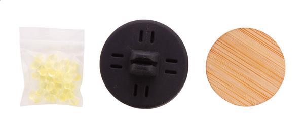 Silikonowy odświeżacz powietrza do samochodu z bambusowym frontem i mocowaniem do kratki wentylacyjnej. Zapach cytryny. Description: Silikonowy odświeżacz powietrza do samochodu z bambusowym frontem i mocowaniem do kratki wentylacyjnej. Zapach cytryny. Primary Color: czarny Secondary Color: naturalny Material 1: Silikon Material 2: Bambus Rozmiar: o42×35 mm