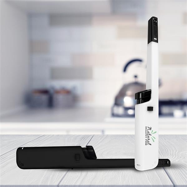 Duża elektroniczna zapalarka kuchenna do wielokrotnego napełniania. Rozmiar: 19 x 2,6 cm T2 (tampodruk): 5 x 1,5 Kolor: Czarny