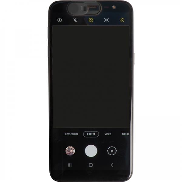 Plastikowa zaślepka na aparat do telefonu komórkowego, łatwa do otwierania i zamykania. Mocowanie na klej 3M pozwala trwale i bezpiecznie umieścić ją na telefonie.