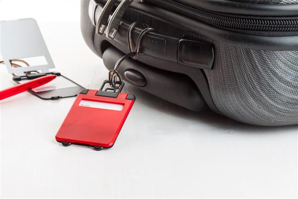 Plastikowa zawieszka na bagaż. Description: Plastikowa zawieszka na bagaż. Primary Color: czerwony Material 1: Plastik Rozmiar: 97×56×4 mm