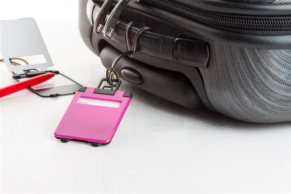 Plastikowa zawieszka na bagaż. Description: Plastikowa zawieszka na bagaż. Primary Color: fuksji Material 1: Plastik Rozmiar: 97×56×4 mm