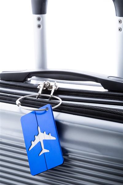 Aluminiowa zawieszka bagażowa z motywem samolotu i metalową linką.