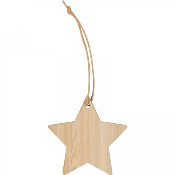 Drewniana zawieszka na choinkę w kształcie gwiazdki.