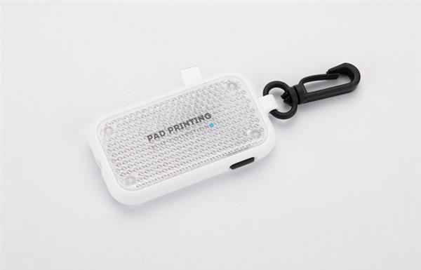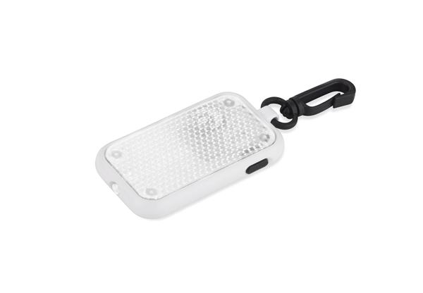Zawieszka świecąca LITTO to funkcjonalny dodatek wyposażony w latarkę LED z trzema trybami świecenia: światło ciągłe oraz migające z różną częstotliwością. Dzięki zaczepowi można ją łatwo przypiąć do różnych przedmiotów. Zawiera elementy o właściwościach odbijających światło, które dodatkowo podkreślają jej funkcjonalność po zmroku.