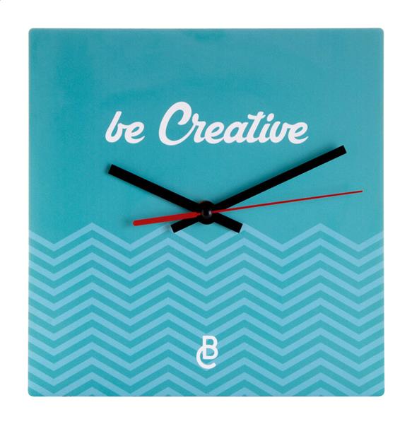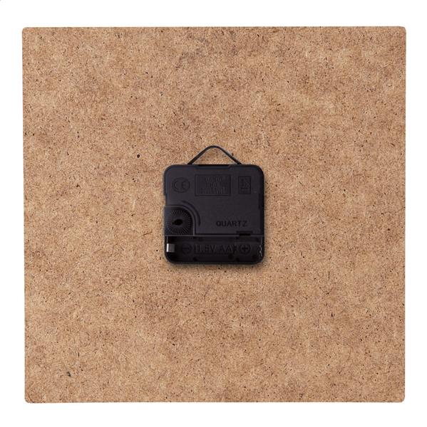 Description: Personalizowany, wykonany z drewnianej płyty HDF, kwadratowy zegar ścienny z grafiką. Produkt działa na 1 baterie AA, dostarczany bez baterii. Min. zam. 50 szt. Primary Color: biały Material 1: Drewno HDF Rozmiar: 220×220 mm Secondary Color: naturalny